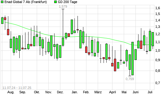 Mit dem Anstieg auf 1,20 EUR hat die Enad Global 7-Aktie am 10.07.2025 die 200-Tage-Linie nach oben gekreuzt.