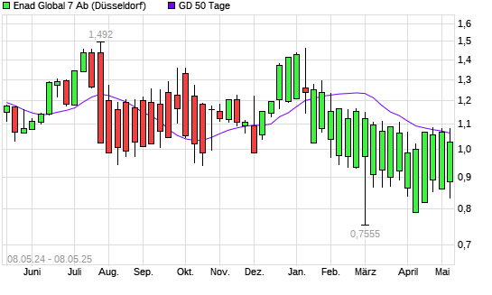 Mit dem Anstieg auf 1,02 EUR hat die Enad Global 7-Aktie am 07.05.2025 die 50-Tage-Linie nach oben gekreuzt.