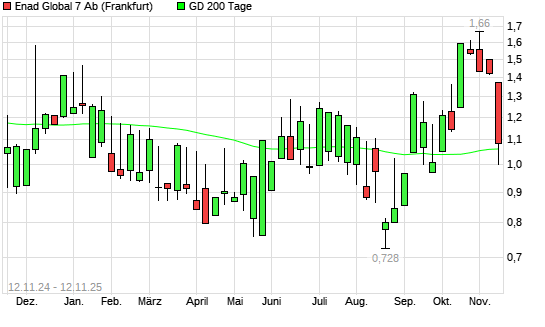 Mit dem Rücksetzer auf 1,00 EUR hat die Enad Global 7-Aktie am 11.11.2025 die 200-Tage-Linie nach unten gekreuzt.