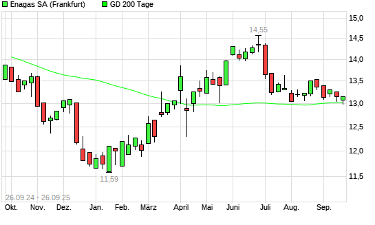 Mit dem Rücksetzer auf 12,98 EUR hat die Enagas-Aktie am 25.09.2025 die 200-Tage-Linie nach unten gekreuzt.