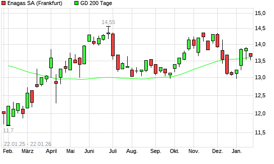 Mit dem Rücksetzer auf 13,52 EUR hat die Enagas-Aktie am 21.01.2026 die 200-Tage-Linie nach unten gekreuzt.