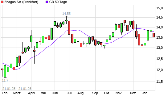 Mit dem Rücksetzer auf 13,65 EUR hat die Enagas-Aktie am 20.01.2026 die 50-Tage-Linie nach unten gekreuzt.