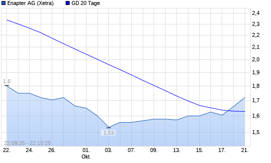 Mit dem Anstieg auf 1,72 EUR hat die Enapter (ex S&O Beteiligungen)-Aktie am 21.10.2025 die 20-Tage-Linie nach oben gekreuzt.