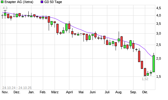 Mit dem Anstieg auf 2,18 EUR hat die Enapter (ex S&O Beteiligungen)-Aktie am 23.10.2025 die 50-Tage-Linie nach oben gekreuzt.