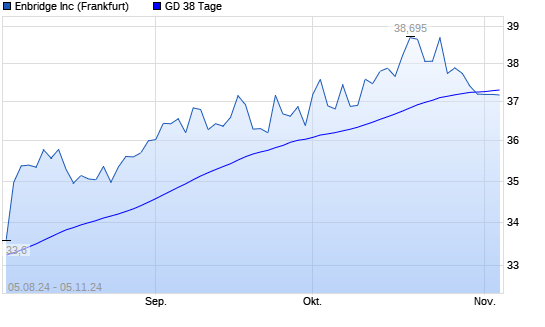 Mit dem Anstieg auf 37,32 EUR hat die Enbridge-Aktie am 04.11.2024 die 38-Tage-Linie nach oben gekreuzt.