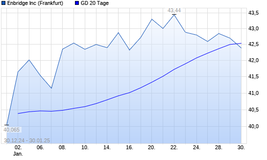 Mit dem Rücksetzer auf 42,49 EUR hat die Enbridge-Aktie am 29.01.2025 die 20-Tage-Linie nach unten gekreuzt.