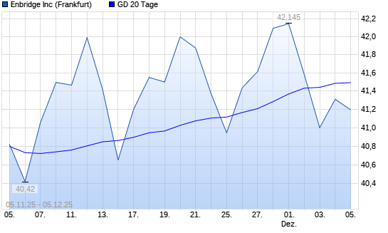 Mit dem Rücksetzer auf 41,38 EUR hat die Enbridge-Aktie am 04.12.2025 die 20-Tage-Linie nach unten gekreuzt.Die Enbridge-Aktie befindet sich seit dem 05.11.2025 im langfristigen Aufwärtstrend ...weiterlesen
