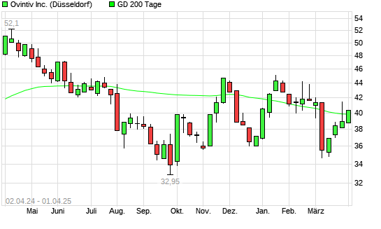 Mit dem Rücksetzer auf 38,56 EUR hat die Encana-Aktie am 31.03.2025 die 200-Tage-Linie nach unten gekreuzt.