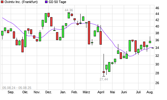 Mit dem Rücksetzer auf 33,98 EUR hat die Encana-Aktie am 04.08.2025 die 50-Tage-Linie nach unten gekreuzt.