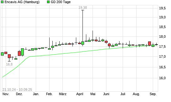 Mit dem Rücksetzer auf 17,60 EUR hat die Encavis-Aktie am 20.10.2025 die 200-Tage-Linie nach unten gekreuzt.Die Encavis-Aktie befand sich seit dem 09.09.2025 im langfristigen Abwärtstrend ...weiterlesen