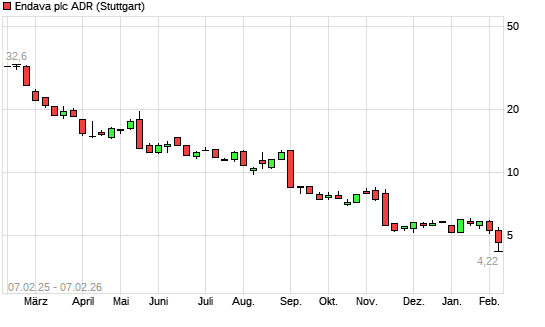 Mit dem Rücksetzer auf 4,22 EUR hat die Endava ADR-Aktie (ISIN US29260V1052) am 06.02.2026 ein neues All-Time-Low erreicht und damit den Kurs vom 04.02.2026 eingestellt.