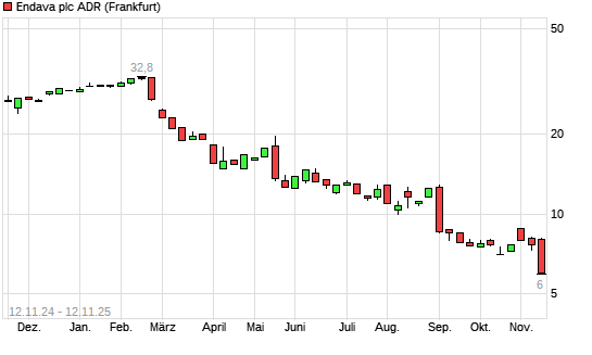 Mit dem Rücksetzer auf 6,00 EUR hat die Endava ADR-Aktie (ISIN US29260V1052) am 11.11.2025 ein neues All-Time-Low erreicht und damit den Kurs vom 17.10.2025 eingestellt.Der Abstand ...weiterlesen