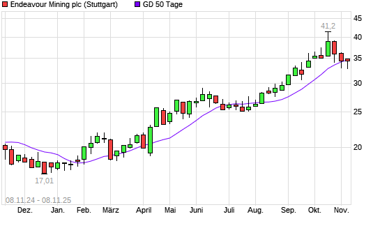 Mit dem Anstieg auf 35,14 EUR hat die Endeavour Mining-Aktie am 07.11.2025 die 50-Tage-Linie nach oben gekreuzt.