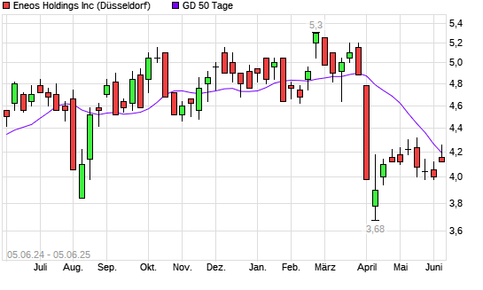 Mit dem Anstieg auf 4,22 EUR hat die Eneos-Aktie am 04.06.2025 die 50-Tage-Linie nach oben gekreuzt.