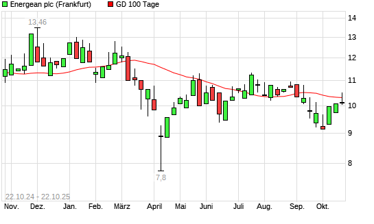 Mit dem Rücksetzer auf 10,04 EUR hat die Energean-Aktie am 21.10.2025 die 100-Tage-Linie nach unten gekreuzt.
