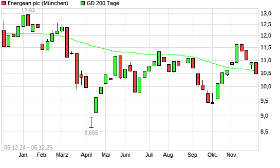 Mit dem Rücksetzer auf 10,28 EUR hat die Energean-Aktie am 04.12.2025 die 200-Tage-Linie nach unten gekreuzt.