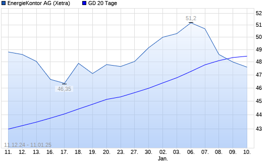 Mit dem Anstieg auf 48,75 EUR hat die Energiekontor-Aktie am 10.01.2025 die 20-Tage-Linie nach oben gekreuzt.