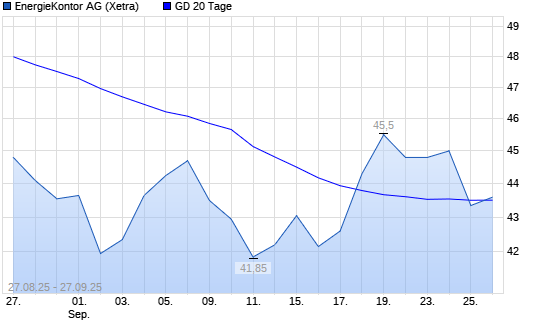 Mit dem Anstieg auf 43,65 EUR hat die Energiekontor-Aktie am 26.09.2025 die 20-Tage-Linie nach oben gekreuzt.