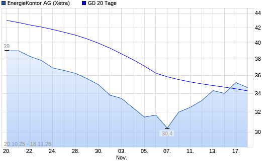 Mit dem Anstieg auf 35,60 EUR hat die Energiekontor-Aktie am 17.11.2025 die 20-Tage-Linie nach oben gekreuzt.
