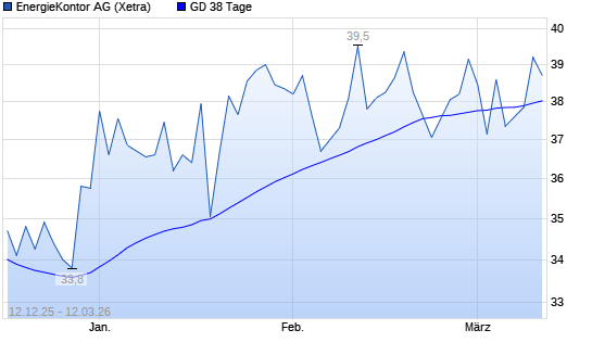 Mit dem Rücksetzer auf 37,95 EUR hat die Energiekontor-Aktie am 11.03.2026 die 38-Tage-Linie nach unten gekreuzt.