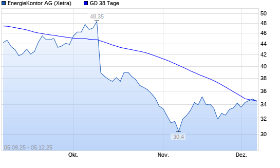 Mit dem Anstieg auf 35,05 EUR hat die Energiekontor-Aktie am 04.12.2025 die 38-Tage-Linie nach oben gekreuzt.Die Energiekontor-Aktie befindet sich seit dem 09.10.2025 im langfristigen Abwärtstrend ...weiterlesen