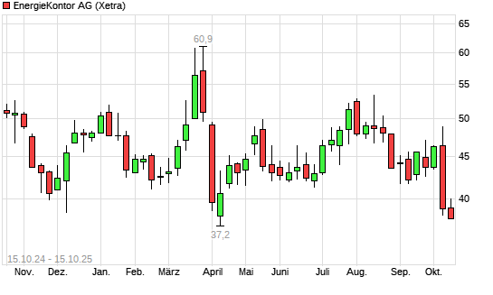 Mit dem Rücksetzer auf 38,20 EUR hat die Energiekontor-Aktie (ISIN DE0005313506) am 14.10.2025 ein neues 3-Jahres-Tief erreicht und damit den Kurs vom 13.10.2025 eingestellt.Die Energiekontor-Aktie ...weiterlesen