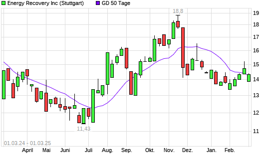 Mit dem Anstieg auf 14,34 EUR hat die Energy Recovery-Aktie am 28.02.2025 die 50-Tage-Linie nach oben gekreuzt.