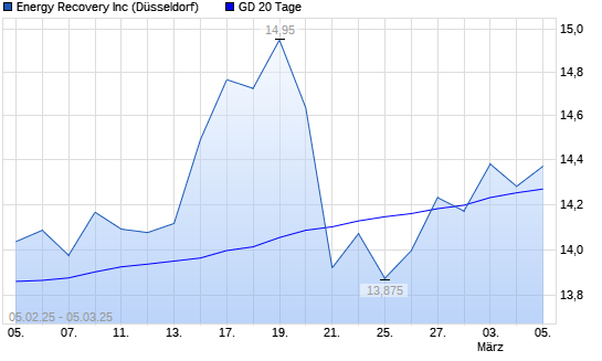 Mit dem Rücksetzer auf 14,23 EUR hat die Energy Recovery-Aktie am 04.03.2025 die 20-Tage-Linie nach unten gekreuzt.
