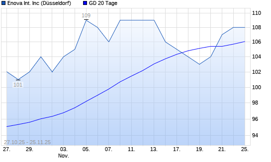 Mit dem Anstieg auf 109,00 EUR hat die Enova-Aktie am 24.11.2025 die 20-Tage-Linie nach oben gekreuzt.
