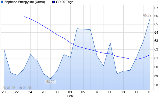 Mit dem Anstieg auf 63,43 EUR hat die Enphase Energy-Aktie am 18.02.2025 die 20-Tage-Linie nach oben gekreuzt.