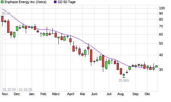 Mit dem Anstieg auf 32,42 EUR hat die Enphase Energy-Aktie am 20.10.2025 die 50-Tage-Linie nach oben gekreuzt.