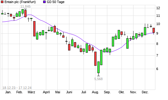 Mit dem Rücksetzer auf 9,00 EUR hat die Entain-Aktie am 16.12.2024 die 50-Tage-Linie nach unten gekreuzt.