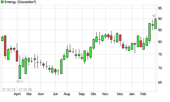 Mit dem Anstieg auf 89,00 EUR hat die Entergy-Aktie (ISIN US29364G1031) am 26.02.2026 ein neues All-Time-High erreicht und damit den Kurs vom 25.02.2026 eingestellt.