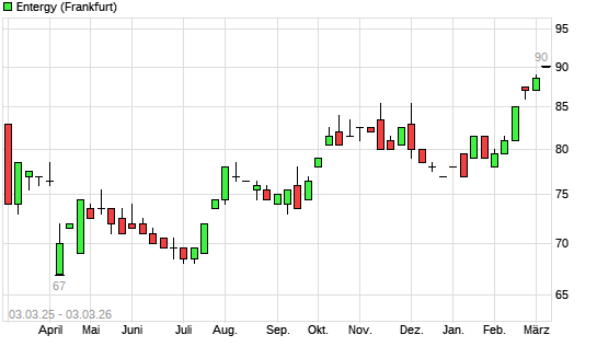 Mit dem Anstieg auf 90,00 EUR hat die Entergy-Aktie (ISIN US29364G1031) am 02.03.2026 ein neues All-Time-High erreicht und damit den Kurs vom 26.02.2026 eingestellt.