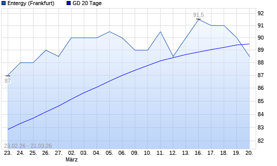 Mit dem Rücksetzer auf 88,50 EUR hat die Entergy-Aktie am 20.03.2026 die 20-Tage-Linie nach unten gekreuzt.