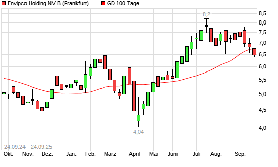 Mit dem Rücksetzer auf 6,60 EUR hat die Envipco Holding-Aktie am 23.09.2025 die 100-Tage-Linie nach unten gekreuzt.