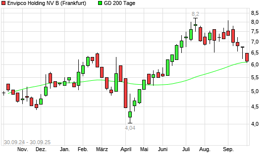 Mit dem Rücksetzer auf 6,08 EUR hat die Envipco Holding-Aktie am 29.09.2025 die 200-Tage-Linie nach unten gekreuzt.
