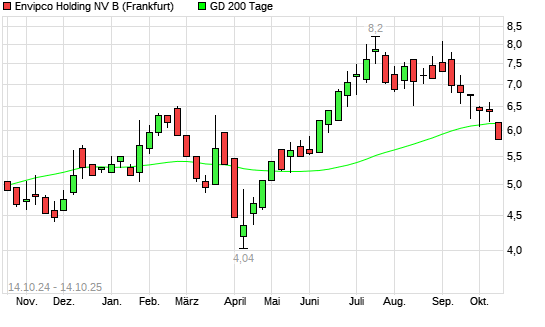 Mit dem Rücksetzer auf 5,82 EUR hat die Envipco Holding-Aktie am 13.10.2025 die 200-Tage-Linie nach unten gekreuzt.
