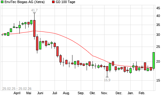 Mit dem Anstieg auf 19,10 EUR hat die Envitec Biogas-Aktie am 24.02.2026 die 100-Tage-Linie nach oben gekreuzt.