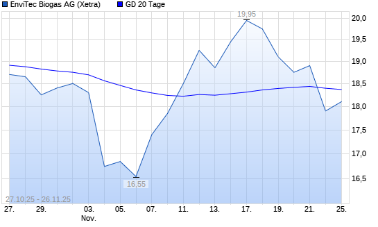 Mit dem Rücksetzer auf 17,85 EUR hat die Envitec Biogas-Aktie am 25.11.2025 die 20-Tage-Linie nach unten gekreuzt.