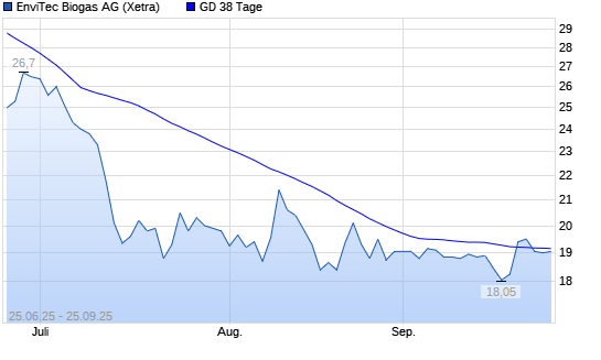 Mit dem Rücksetzer auf 18,85 EUR hat die Envitec Biogas-Aktie am 24.09.2025 die 38-Tage-Linie nach unten gekreuzt.