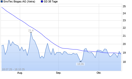 Mit dem Rücksetzer auf 18,00 EUR hat die Envitec Biogas-Aktie am 17.10.2025 die 38-Tage-Linie nach unten gekreuzt.