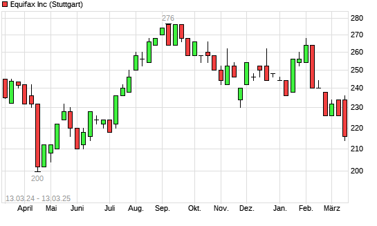 Mit dem Rücksetzer auf 220,00 EUR hat die Equifax-Aktie (ISIN US2944291051) am 12.03.2025 ein neues 6-Monats-Tief erreicht und damit den Kurs vom 24.02.2025 eingestellt.