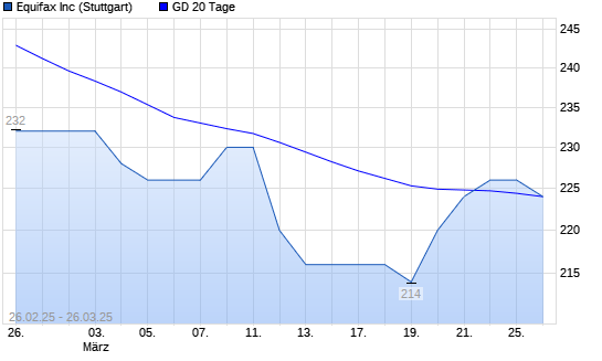 Mit dem Anstieg auf 226,00 EUR hat die Equifax-Aktie am 25.03.2025 die 20-Tage-Linie nach oben gekreuzt.