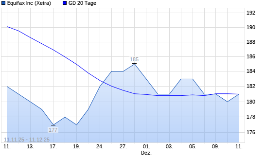 Mit dem Rücksetzer auf 179,00 EUR hat die Equifax-Aktie am 10.12.2025 die 20-Tage-Linie nach unten gekreuzt.