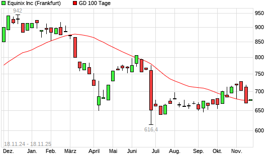 Mit dem Anstieg auf 678,00 EUR hat die Equinix-Aktie am 17.11.2025 die 100-Tage-Linie nach oben gekreuzt.