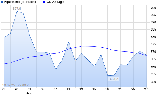 Mit dem Anstieg auf 670,60 EUR hat die Equinix-Aktie am 26.08.2025 die 20-Tage-Linie nach oben gekreuzt.