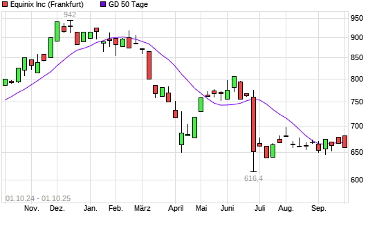 Mit dem Rücksetzer auf 664,00 EUR hat die Equinix-Aktie am 30.09.2025 die 50-Tage-Linie nach unten gekreuzt.
