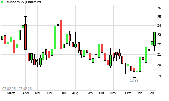 Mit dem Anstieg auf 23,32 EUR hat die Equinor-Aktie (ISIN NO0010096985) am 06.02.2026 ein neues 6-Monats-Hoch erreicht und damit den Kurs vom 04.02.2026 eingestellt.