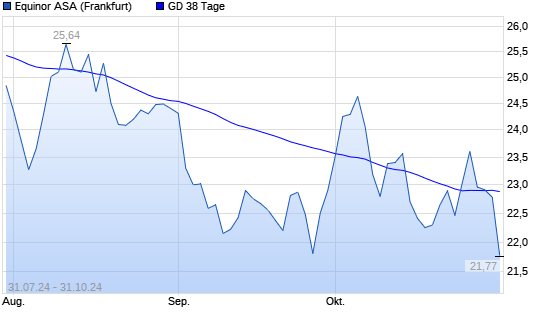 Mit dem Rücksetzer auf 22,78 EUR hat die Equinor-Aktie am 30.10.2024 die 38-Tage-Linie nach unten gekreuzt.